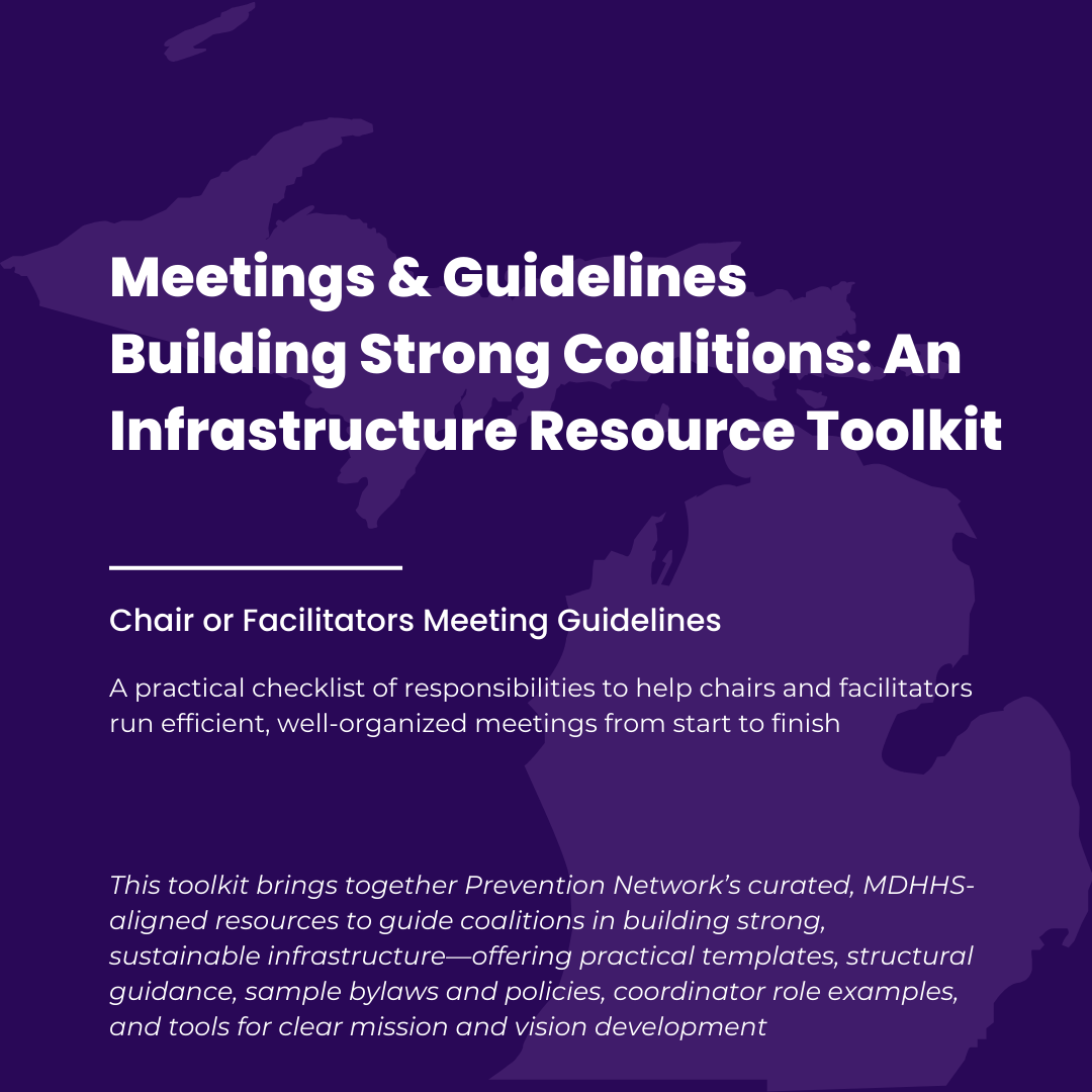 A practical checklist of responsibilities to help chairs and facilitators run efficient, well-organized meetings from start to finish.